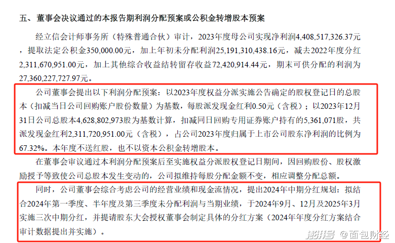 同時,雅戈爾董事會綜合考慮公司的經(jīng)營業(yè)績和現(xiàn)金流情況,提出2024年中期分紅規(guī)劃:擬結合2024年第一季度、半年度及第三季度未分配利潤與當期業(yè)績,于2024年9月、12月及2025年3月實施三次中期分紅,并提請股東大會授權董事會制定具體的分紅方案(2024年年度分紅方案結合審計數(shù)據(jù)提出并實施)。