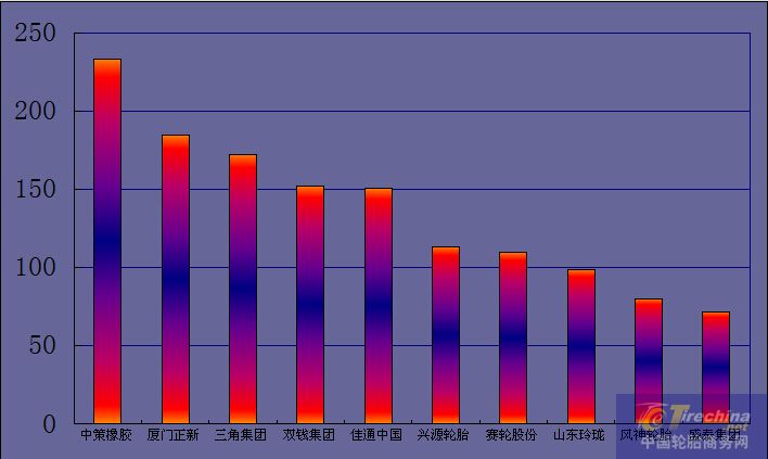 中策橡膠排行第一,盛泰集團(tuán)排行第十,而賽輪股份第一次進(jìn)入前十;雙星淡出。
