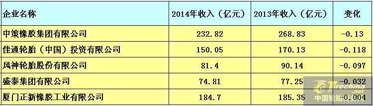 中國(guó)輪胎企業(yè) 2015收入排行榜